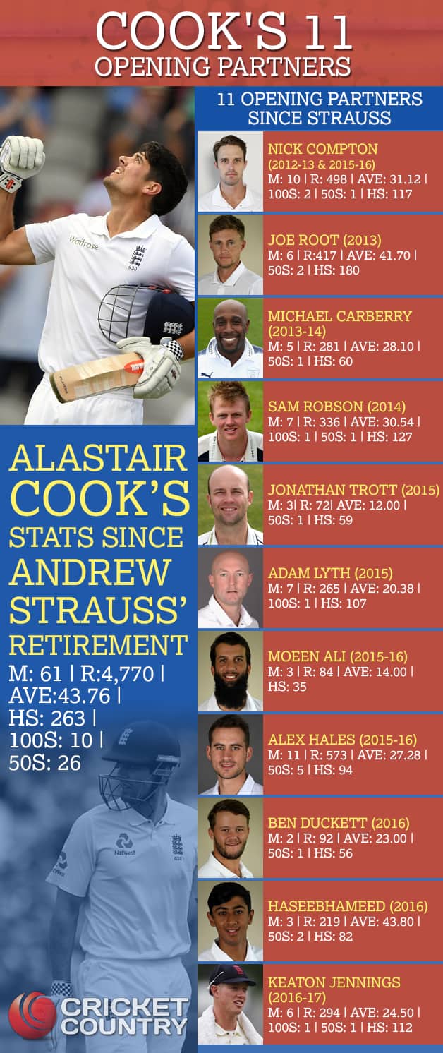In Numbers: Alastair Cook and his 11 opening partners since Andrew Strauss