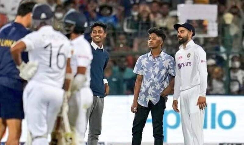 फैन्स अपने हीरो से मिलने के लिए भला क्या कुछ नहीं कर जाते. वह पुलिस को भी चकमा देकर बीच मैदान पर भी पहुंच जाते हैं ताकि अपने फेवरिट क्रिकेटर के करीब जाकर उनके साथ सेल्फी ले सकें. कुछ ऐसा ही एक बार फिर भारत और श्रीलंका (IND vs SL) के खिलाफ खेले जा रहे बेंगलुरु टेस्ट के दूसरे दिन हुआ. यहां भारतीय टीम जब फील्डिंग कर रही थी, तो खेल कुछ पल के रुका ही था कि मैदान में तीन दर्शक पुलिसकर्मियों को चकमा देकर मैदान में भारतीय खिलाड़ियों के बीच पहुंचने की कोशिश करने लगे.