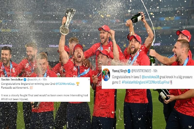इंग्लैंड की टीम ने ऑस्ट्रेलिया में खेले गए टी-20 वर्ल्ड कप 2022 का खिताब जीत लिया है. इंग्लैंड की जीत के बाद सोशल मीडिया पर बधाई देने वालों का तांता लगा है. सचिन तेंदुलकर, सनथ जयसूर्या, विराट कोहली, युवराज सिंह, एबी डिविलियर्स सहित दुनिया भर के खिलाड़ियों ने भी इंग्लैंड की टीम को अपनी शुभकामनाएं दी है.