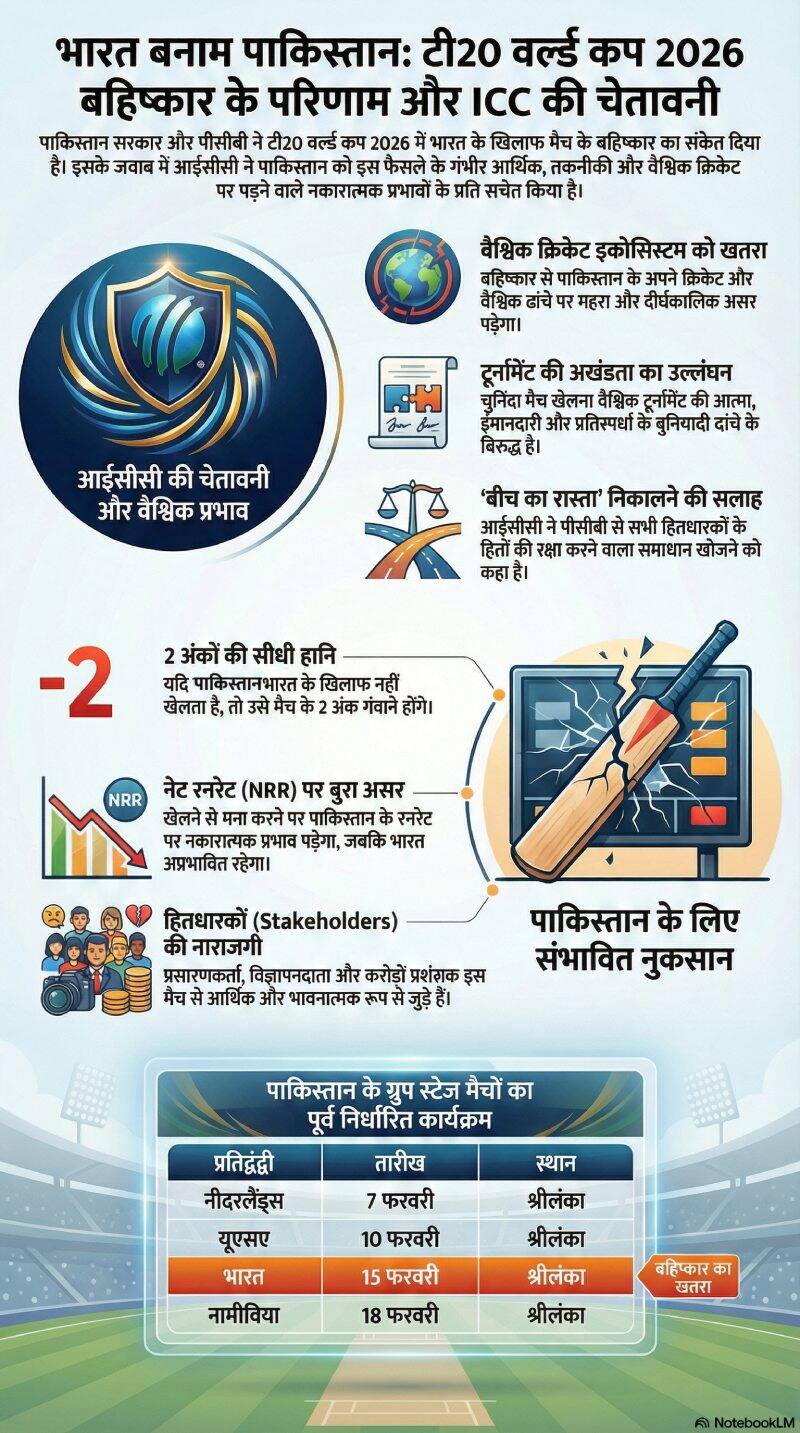 हालांकि, आईसीसी को आधिकारिक तौर पर पत्र के जरिए फैसला न बताने के फैसले को इस मामले को दबाए रखने की कोशिश के तौर पर देखा जा रहा है. साफ है कि पीसीबी मैच के बॉयकॉट से बचने के लिए आपसी सहमति से हल निकालने की आईसीसी की किसी भी अपील पर ध्यान नहीं देगा क्योंकि यह फैसला उसकी सरकार ने लिया है.
