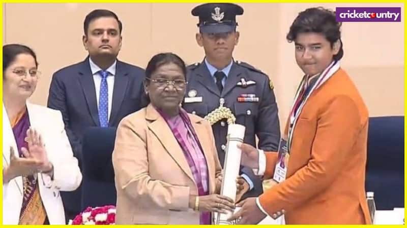 वैभव सूर्यवंशी को राष्ट्रपति द्रौपद्री मुर्मू ने नई दिल्ली में पुरस्कार से सम्मानित किया. वह इस साल टी-20 में तीन शतक लगा चुके हैं.
