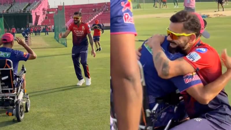 दरअसल, राहुल द्रविड़ के पैर में चोट लगी है फिर भी वह टीम के साथ व्हील चेयर पर रहकर जुड़े हुए हैं. शनिवार को राजस्थान रॉयल्स के प्रैक्टिस के दौरान राहुल द्रविड़ मैदान पर मौजूद थे. उस वक्त विराट कोहली भी मैदान पर थे. कोहली राहुल को देखते ही उनके पास जाकर मिले. पहले कोहली राहुल को देखते ही मुस्कुराएं और राहुल द्रविड़ के पांस पहुंचकर उन्होंने गले लगाया. इस दौरान राहुल द्रविड़ भी काफी खुश दिखे.