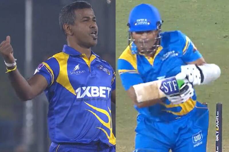 रोड सेफ्टी वर्ल्ड सीरीज 2022 के फाइनल में सचिन तेंदुलकर की कप्तानी वाली टीम ने श्रीलंका लीजैंड्स को हरा दिया. शनिवार को रायपुर में खेले गए मैच में सचिन की टीम ने श्रीलंका को 33 रन से हरा दिया. हालांकि बल्ले से सचिन के लिए यह मैच बहुत अच्छा नहीं रहा. तेंदुलकर पहली ही गेंद पर खाता खोले बिना आउट हो गए. श्रीलंका लीजैंड्स के तेज गेंदबाज नुआन कुलासेकरा ने तेंदुलकर को बोल्ड कर दिया. दाएं हाथ के इस पेसर की गेंद टप्पा लगने के बाद अंदर आई और सचिन के बल्ले और पैड के गैप से जाकर ऑफ स्टंप पर लगी.