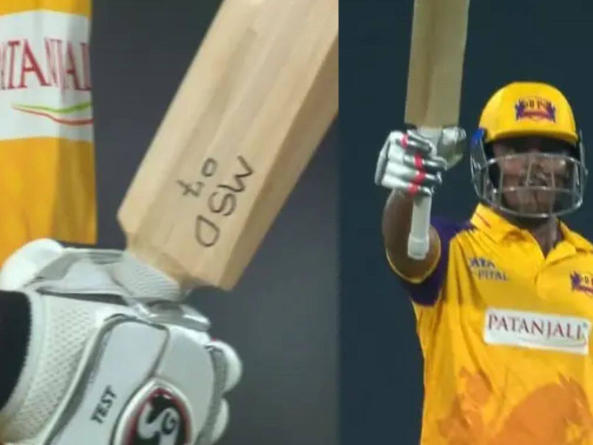 यूपी वॉरियर्स की इस खिलाड़ी ने अपने बल्ले का जौहर दिखाया. लेकिन इनके खेल के साथ-साथ इनका बल्ला भी फेस हो गया है. इनके बल्ले पर धोनी का नाम लिखा है वह काफी पसंद किया जा रहा है.