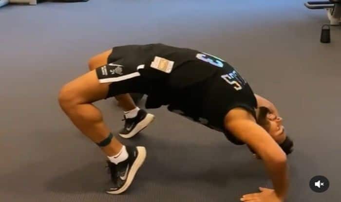 रिषभ पंत ने अपने वर्कआउट का यह वीडियो शेयर किया है, जिसमें वह चक्रासन और फिर पीठ के बल लेटे हुए जंप मारकर खड़े हो रहे हैं.