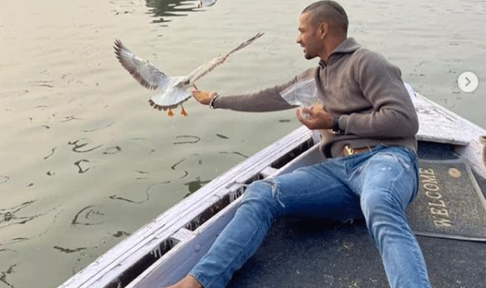 बनारस के घाट पर पंक्षियों को दाना खिलाते दिखे Shikhar Dhawan, नाव वाले का कटा चालान
