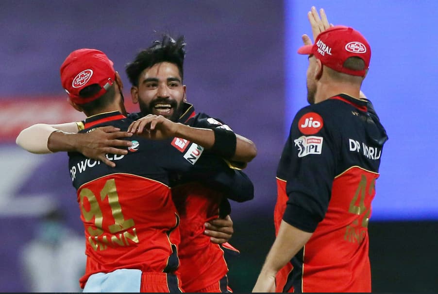 मोहम्मद सिराज ने कोलकाता नाइट राइडर्स के खिलाफ मैच में 8 रन देकर तीन विकेट लिए।