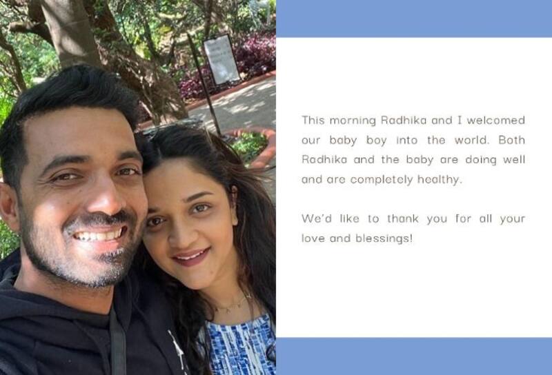 The veteran batter used his social media to make this announcement. He posted a letter saying “This morning, Radhika and I welcomed our baby boy into the world. Both Radhika and the baby are doing well and are completely healthy. Weâd like to thank you for all your love and blessings.”