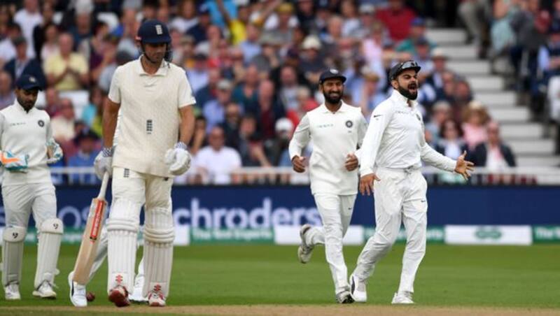 Indian team celebrates the dismissal of Alastair Cook (Getty Images)