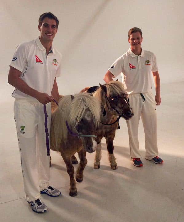 Australian speedster Pat Cummins and skipper Steve Smith were seen along with ponies for Qantas jump on board shoot.
