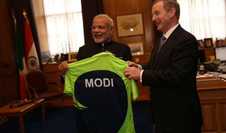 In a warm gesture, Modi’s Irish counterpart Enda Kenny presented the former with the jersey of the national cricket team.