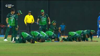 Pakistan A defeated India A by 128 runs in the Emerging Asia Cup. After successfully defending their title, Pakistan team thanked the almighty and did a team Sajdah.